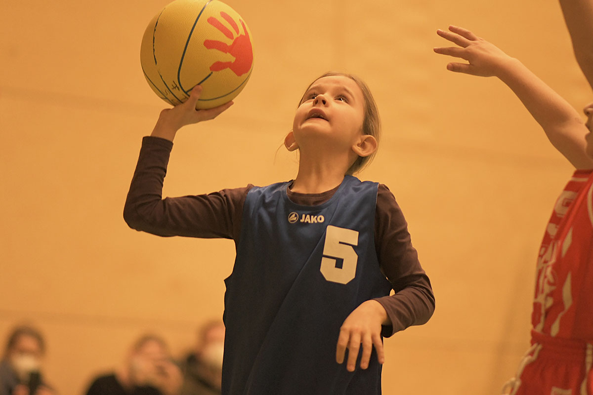 Am Sonntag, dem 9. Januar, war es endlich so weit: Die U8 der Mammuts, die die Hinrunde der Saison ausgesetzt hatte, durfte in der heimischen Illstraße ihr erstes Spiel überhaupt bestreiten. So streiften Pauline, Juri, Käthe, Jonah, Lasse, Zoe, Aliah und Deniz erstmals das blaue Trikot des Friedenauer TSC über und begrüßten die Gäste der Berlin Baskets.