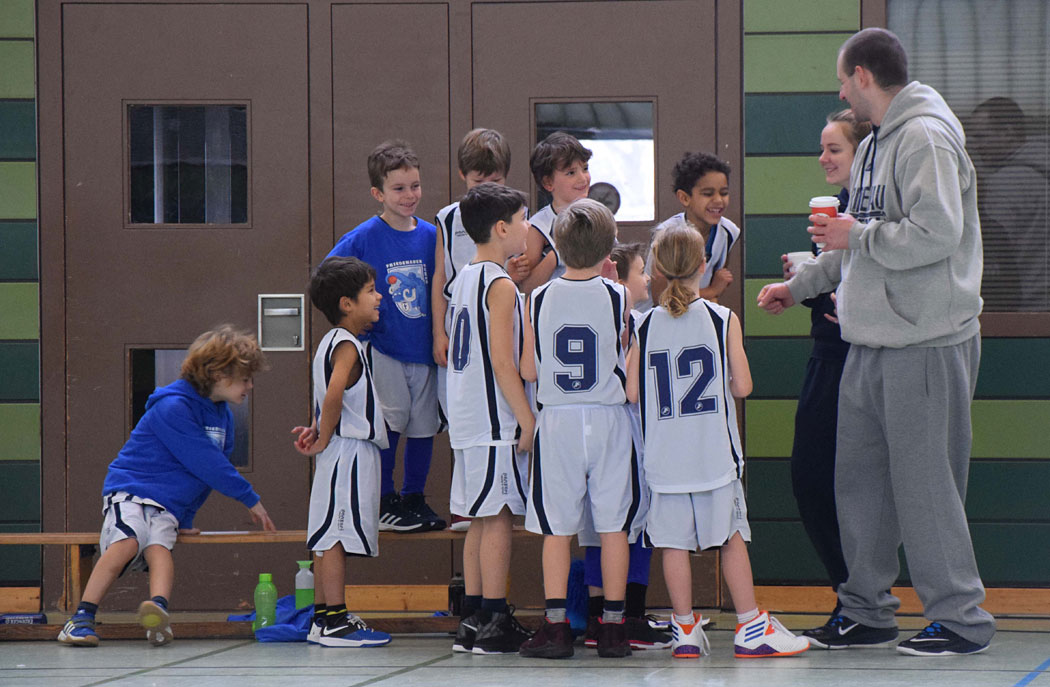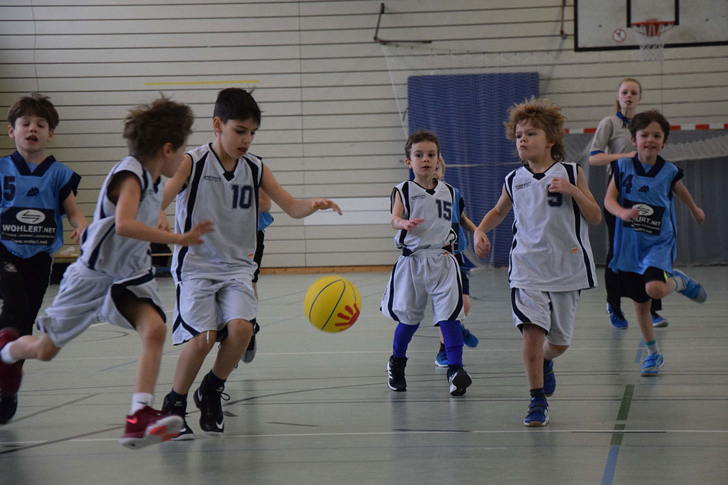 Weiter geht es mit der zweiten Halbzeit, dem sechsten Zehntel und den Kids wie im ersten Zehntel. Wieder zeigen die vier was Zusammenspiel, Dribbeln und Passen heißt. Lena holt die Rebounds, Constantin wirft zwei Körbe. Bjarne und Nikola punkten wie ein eingespieltes Duo jeweils nach flinken Pässen. Lena reicht das 4:39 noch nicht und schließt das Zehntel mit zwei weiteren Körben ab. Mit dem Spielstand von 4:43 machen sich Julius, Ensar, Jacob und Thierno auf ins siebte Zehntel. Jacob und Thierno erzielen jeweils ihren sechsten Korb. Julius zeigt starke Defense und gibt sichere Pässe. Ensar kämpft sich dribbelnd an seinem Gegenspieler vorbei und verwandelt den Spielstand mit seinem Korbtreffer in ein 4:49. Schnell stehen Benjamin, Constantin, Bjarne und Nikola im achten Viertel auf dem Feld und lassen zur Abwechslung den BBS zwei Körbe treffen. Genauso viele Punkte bringen uns zwei schöne Korbleger von Constantin. Das können Bjarne und Nikola auch und so steht es schließlich 8:57. Kein Korb mehr für die Gegner/innen nehmen sich Jacob, Thierno, Ensar und Lena für das vorletzte Zehntel vor. Ob es geklappt hat? Ja! Zudem feuert Jacob den Ball erneut in den Korb und Thierno entschließt sich nach den langweiligen Korblegern das Publikum mit einem „Dreier“festival zu unterhalten. 8:65 nach dem neunten Zehntel. Lena und Jacob sind noch nicht müde und bleiben für das letzte Zehntel auf dem Spielfeld. Dazu kommen Bjarne und Constantin. Wo ist die Defense? Ups, doch schon müde? Ein Korb für BBS. 10:65. Bjarne reicht das Ergebnis noch nicht und beweist seine schöne Wurftechnik noch zweimal. 10:69. Abpfiff. Zufriedene Coaches, stolze Eltern, mutige Kinder, tolles Passspiel, Körbe von 8/10 Kindern. Das schreit nach einem Rasberry Cheesecake als Belohnung- Danke Matthias!