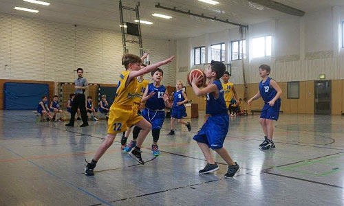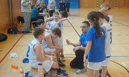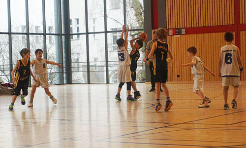 Gleich zwei Spiele an einem Wochenende hatte die U9 zu bestreiten. Zunächst ging es an der Schillerstraße gegen das zur Rückrunde nachgemeldete Team von DBV. Erstmal Verwunderung: nur fünf Kinder saßen krankheitsbedingt bei den Charlottenburgern auf der Bank. Doch diese waren hoch motiviert, wie die Mammuts gleich feststellen mussten: Die ersten beiden Zehntel wurden auf Friedenauer Seite komplett verschlafen, die Spieler liefen ziellos übers Feld, von Defense keine Spur, im Angriff lief auch nix zusammen – und die DBV-Jungs nutzten das gnadenlos aus! 2:16 stand es zu Beginn des dritten Zehntels! Sollte dieses Spiel in einem Desaster enden? Doch da zeigen sich erste Regungen einer Gegenwehr. Hier ein wenig aufmerksame Defense, da ein bissiger Steal … Nanu? Ist das Mammut etwa aufgewacht? Der Charlottenburger Sturmlauf ist jedenfalls erstmal gestoppt, insbesondere Lennox und Husni zeigen, was sie in der Defense alles drauf haben, das Dritte endet 2:2! Und jetzt ist es der Kleinste auf dem Feld, der das Kommando übernimmt: Erik bringt den Ball nach vorne und ruft „Aufstellung!“ Ach ja, da war ja was … alle laufen auf ihre Plätze, binden außen die Gegenspieler, wie viel Platz auf einmal auf dem Weg zum Korb ist! Erik dribbelt seinen Gegenspieler schwindelig, geht vorbei, Korb! Und das ganze gleich noch einmal, und noch einmal! Die Charlottenburger reiben sich verwundert die Augen, sind diese abgezockten Friedenauer dieselben wie in den ersten beiden Zehnteln? Das Vierte geht mit 6:2 an Friedenau, nur noch 10 Punkte Rückstand. Jetzt sind die Blau-Weißen endlich hellwach und schnell auf den Beinen, sowohl in der Defense als auch im Spiel nach vorne. Marc läuft sich toll frei, bekommt den Ball, er sucht nach einem Passempfänger, Marc, wirf doch! Er dreht sich um, sieht den Korb, wirft … Treffer! Marcs erster Korb in einem Punktspiel! Auch dieses Zehntel endet 6:2 für Friedenau, wir sind auf 6 Punkte dran!