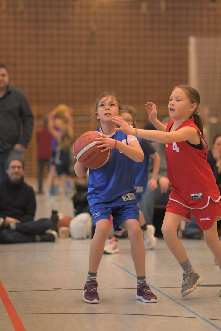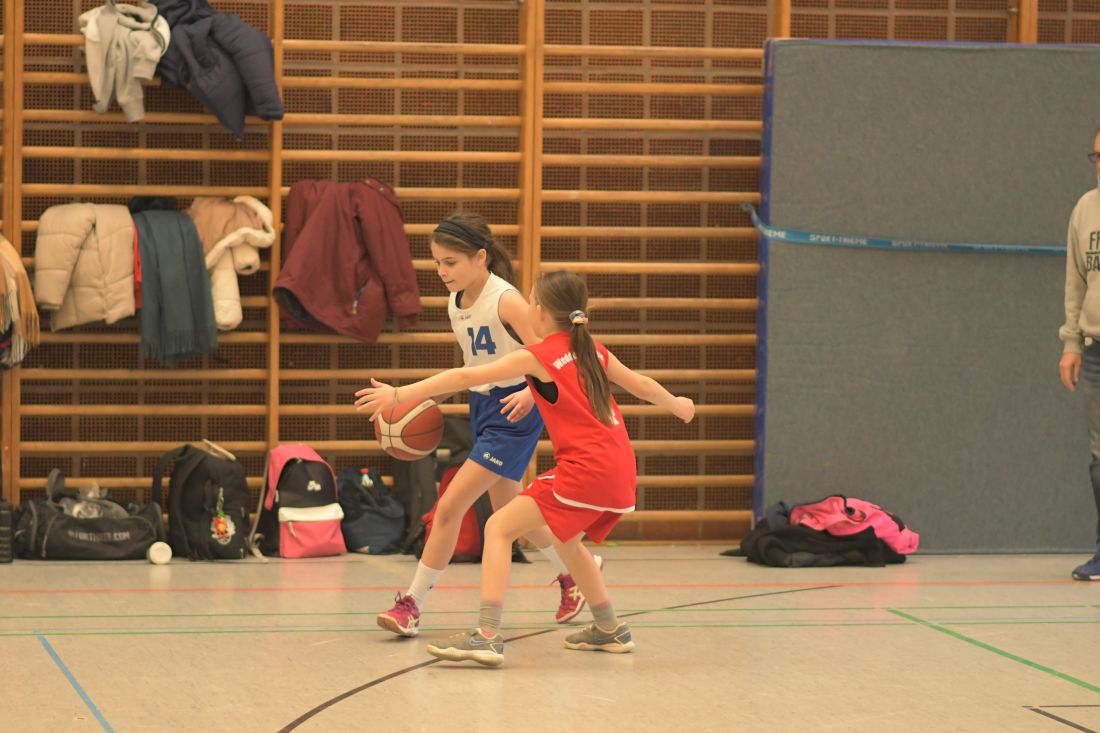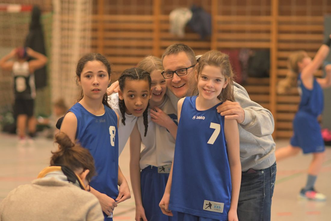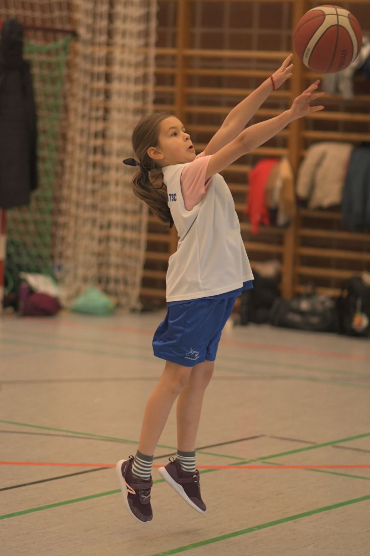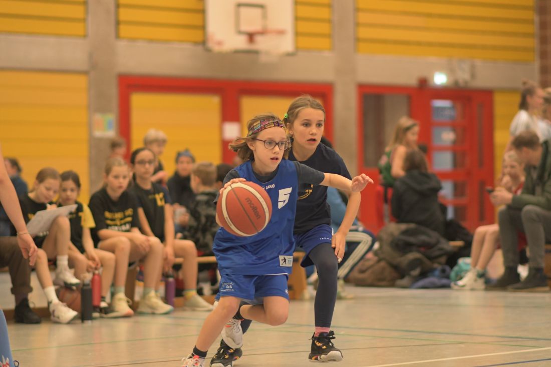 Toll war auch zu sehen, wie schnell sich die Mädels mit dem 3×3-Spiel auf einen Korb ohne aktives Coaching zurechtfanden und die im Training und den normalen Spielen erlernten Inhalte selbstständig anwendeten, sei es die weite Aufstellung im Angriff, das beherzte Dribbling zum Korbleger oder die aufmerksame Defense mit dem Rücken zum Korb. Und immer öfter konnten die begeisterten Coches und ZuschauerInnen auch Täuschungen und „Ditschen“ (Ausboxen) beobachten!