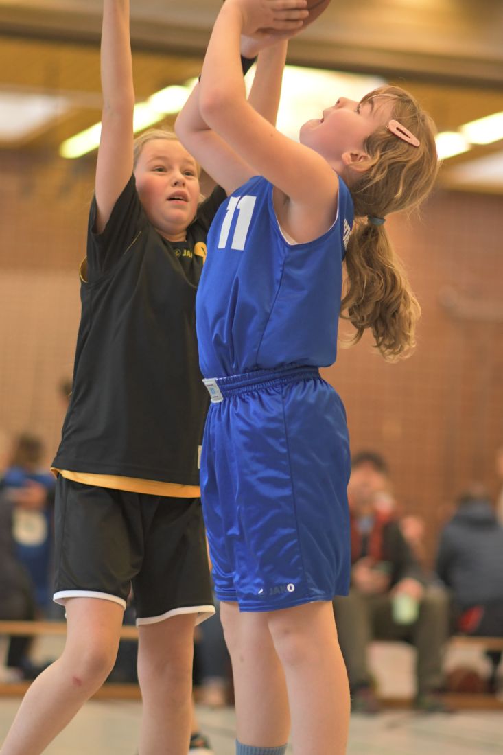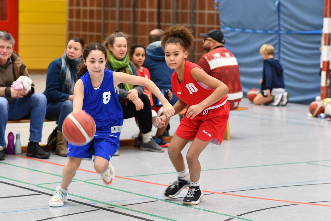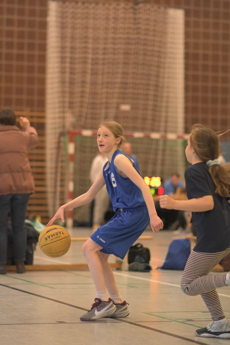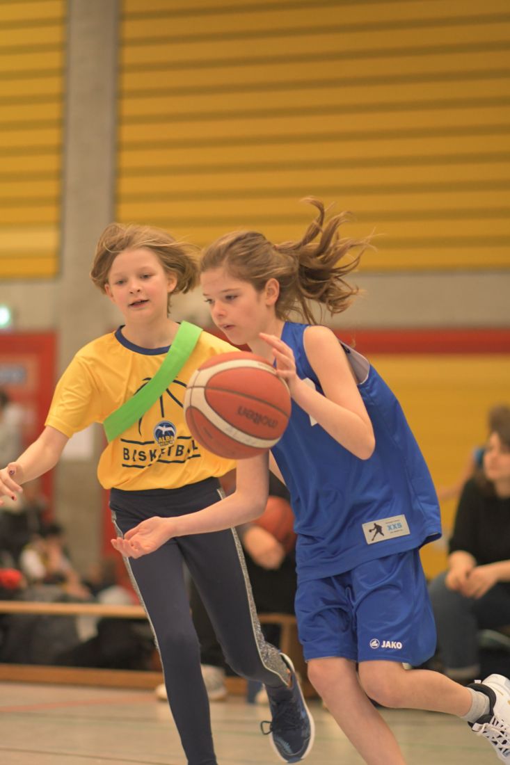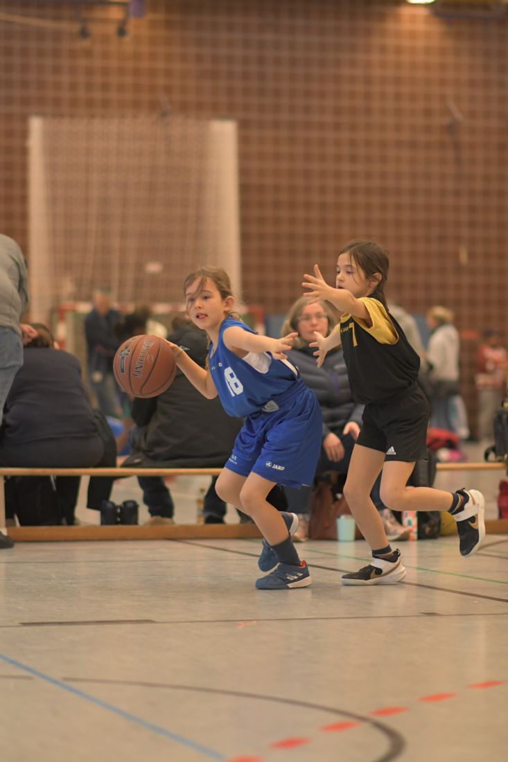 Toll war auch zu sehen, wie schnell sich die Mädels mit dem 3×3-Spiel auf einen Korb ohne aktives Coaching zurechtfanden und die im Training und den normalen Spielen erlernten Inhalte selbstständig anwendeten, sei es die weite Aufstellung im Angriff, das beherzte Dribbling zum Korbleger oder die aufmerksame Defense mit dem Rücken zum Korb. Und immer öfter konnten die begeisterten Coches und ZuschauerInnen auch Täuschungen und „Ditschen“ (Ausboxen) beobachten!