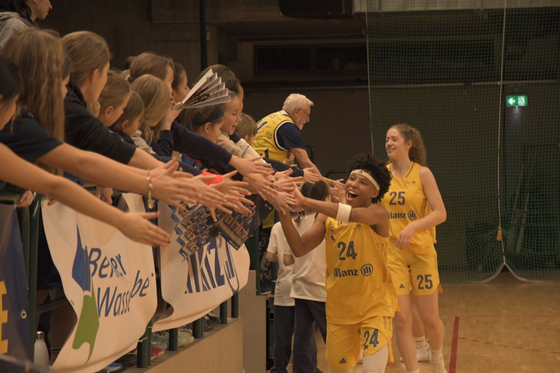 Leider war die Spielzeit mit knapp über sechs Minuten dann doch etwas knapp, und es kamen nicht alle Spielerinnen wie erhofft zum Einsatz. Und leider fielen auch fast nur die Würfe der ALBA-Mädels in den Korb. Aber dem Spaß und dem Erlebnis tat das keinen Abbruch, die Friedenauer Mammut Girls waren mit Feuereifer dabei, sowohl im Spiel als auch beim Abklatschen mit dem ALBAtros und beim Autogramme-Sammeln und beim Anfeuern der ALBA-Damen, die ihr Spiel zur großen Freude der 1200 ZuschauerInnen in der Halle gewannen.
