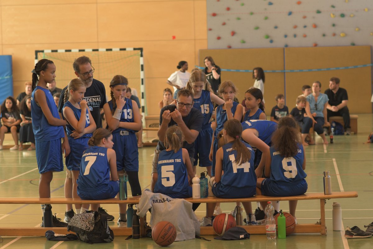 Zur großen Freude der Coaches wurde jetzt bissig verteidigt und es waren mehr und mehr umgesetzte Inhalte aus dem Training wiederzuerkennen. Die dritte Vier legte ein 11:1 nach, dann wurde es nochmal etwas enger, Halbzeitstand 47:34 für unsere Mammut Girls. Aber die hatten jetzt richtig Bock! Sie steigerten sich von Achtel zu Achtel, jagten jedem Ball hinterher und spielten endlich den Fastbreak-Basketball, den sie wochenlang im Training geübt und zelebriert hatten. In den Achteln 5, 6 und 7 gelangen 40 Punkte, den Zehlendorfern wurden dagegen nur 13 erlaubt. 87:47 vor dem letzten Achtel. Würde etwa im ersten Saisonspiel ein Hunderter gelingen? Und wie! Ava, eine von unseren beiden 2014-ern, war es, die sich das Recht verdiente, zum nächsten Training Kuchen zu backen. 🙂