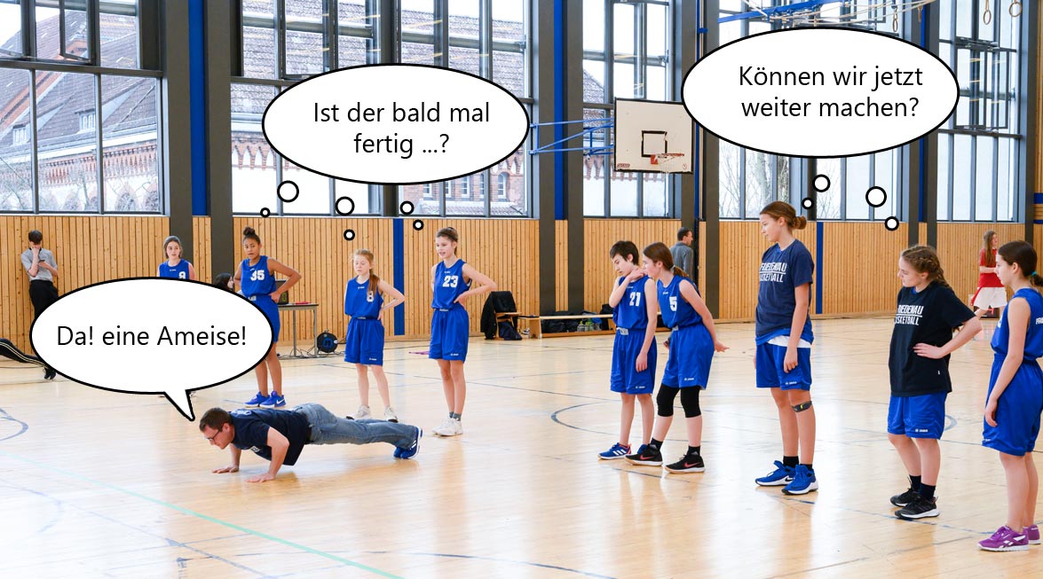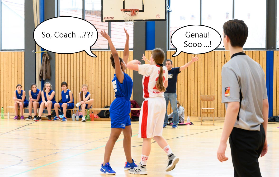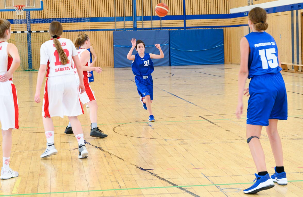 In der Defense wurde viel beherzter zugegriffen als noch vor einer Woche gegen Hermsdorf, auch im Angriff waren jetzt mehr mutige Korbleger zu sehen, die Foulbeastung beim Gegener wuchs bedrohlich. Doch die Baskets-Ladies ließen sich überhaupt nicht aus dem Konzept bringen und spielten souverän ihr Spiel, während bei uns weder Freiwürfe noch Korbleger oder Würfe ins Ziel fanden … Im letzten Viertel war es dann unsere „Kleinste“, Mia, die endlich den Schalter umlegte, frech zum Korb ging und gegen die große Nummer 6 der Baskets punktete! „Da war ich so richtig aggressiv!“, sagte Mia hinterher. Toll! Genau so wollen wir euch alle gerne von Anfang sehen … 🙂